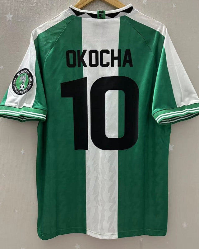 Rive Nigeria's history with JAY JAY OKOCHA's number 10 jersey from the 1996-97 season. Masterfully crafted, it celebrates the strength and history of the 'Eagles' led by the talented Nigerian player