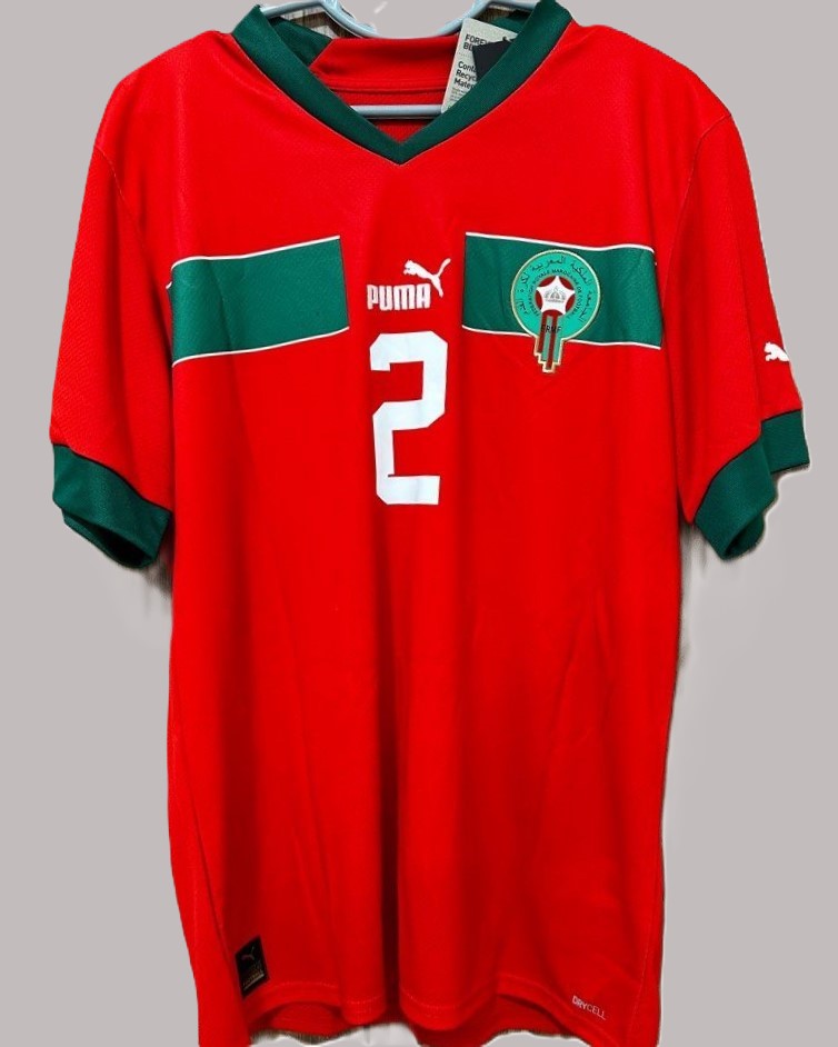 Tutto l'orgoglio e la passione del Marocco vivono in questa maglia della stagione 2022-23 con il numero 2 di ACHRAF HAKIMI. Realizzata in un vibrante rosso che raffigura il cuore pulsante del popolo marocchino, evidenzia ai massimi livelli la personalizzazione del fenomenale giocatore