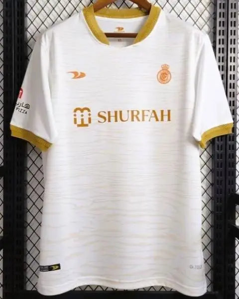 A new frontier of football is represented in this Al Nassr 2022-23 jersey with the number 7 of CRISTIANO RONALDO. A uniform that represents the future of a new football, with the personalisation of the Portuguese star player sanctioning and legitimising the birth of new footballing horizons