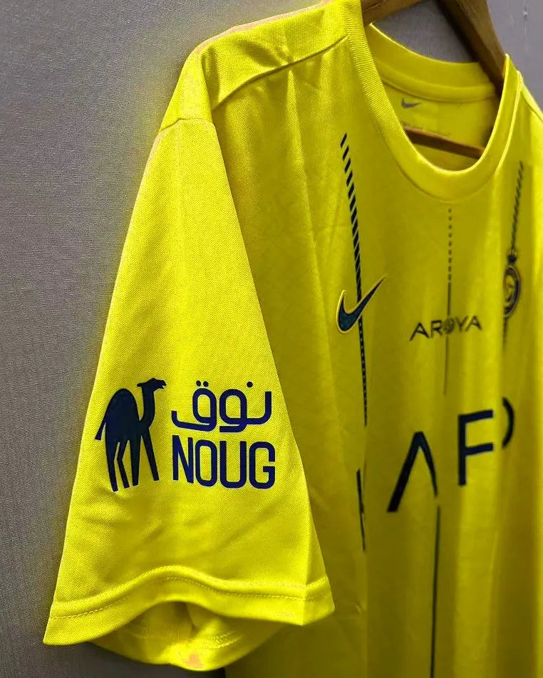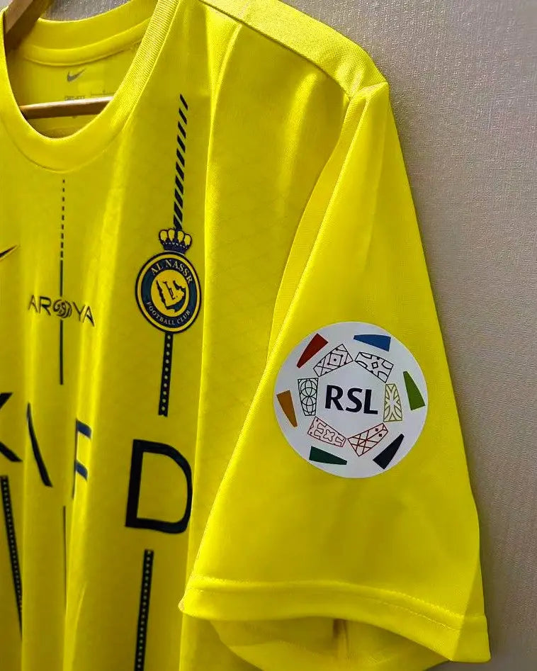 A new frontier of football is represented in this Al Nassr 2023-24 jersey with the number 7 of CRISTIANO RONALDO. A uniform enriched by the Saudi League patch that represents the future of a new football, with the personalisation of the Portuguese star player sanctioning and legitimising the birth of new footballing horizons