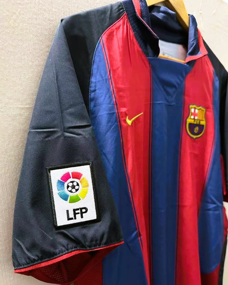 Benvenuti nel cuore pulsante del calcio con la maglia del Barcellona 2003-04, una creazione Nike con il numero 10 di RONALDINHO. Questo capolavoro arricchito dalla patch della La Liga, cattura il sorriso incantevole e il talento straordinario del funambolo brasiliano, amatissimo idolo della tifoseria blaugrana