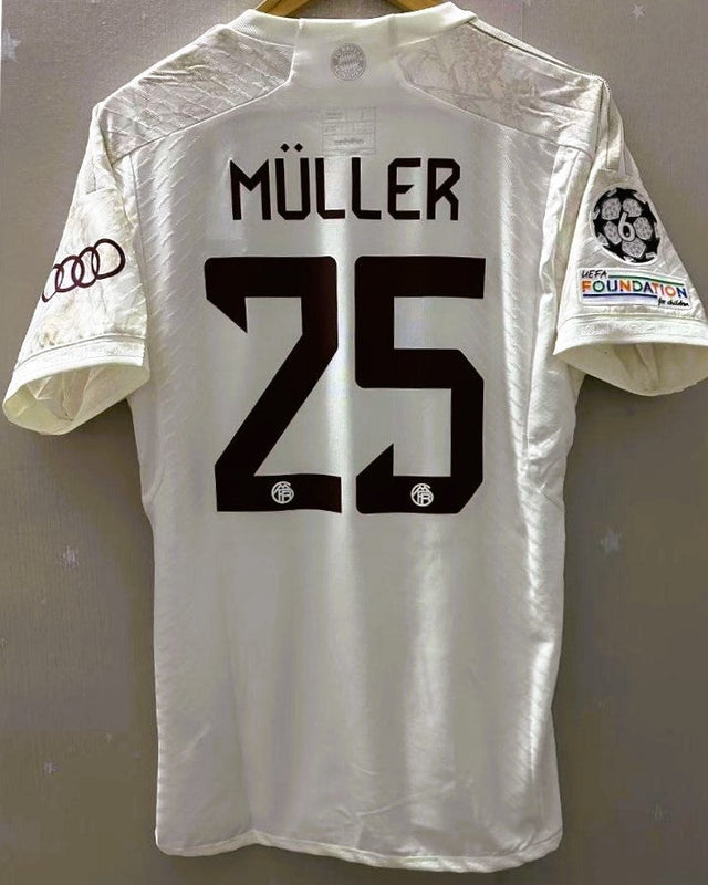 Benvenuti nella storia del calcio con la maglia del Bayern Monaco 2023-24, un'icona padrona del tempo che celebra con il numero 25 di THOMAS MULLER. Realizzata magnificamente con le patch della Champions League su entrambe le maniche, evidenzia la personalizzazione del fenomenale giocatore tedesco ad elevarne ulteriormente il prestigio