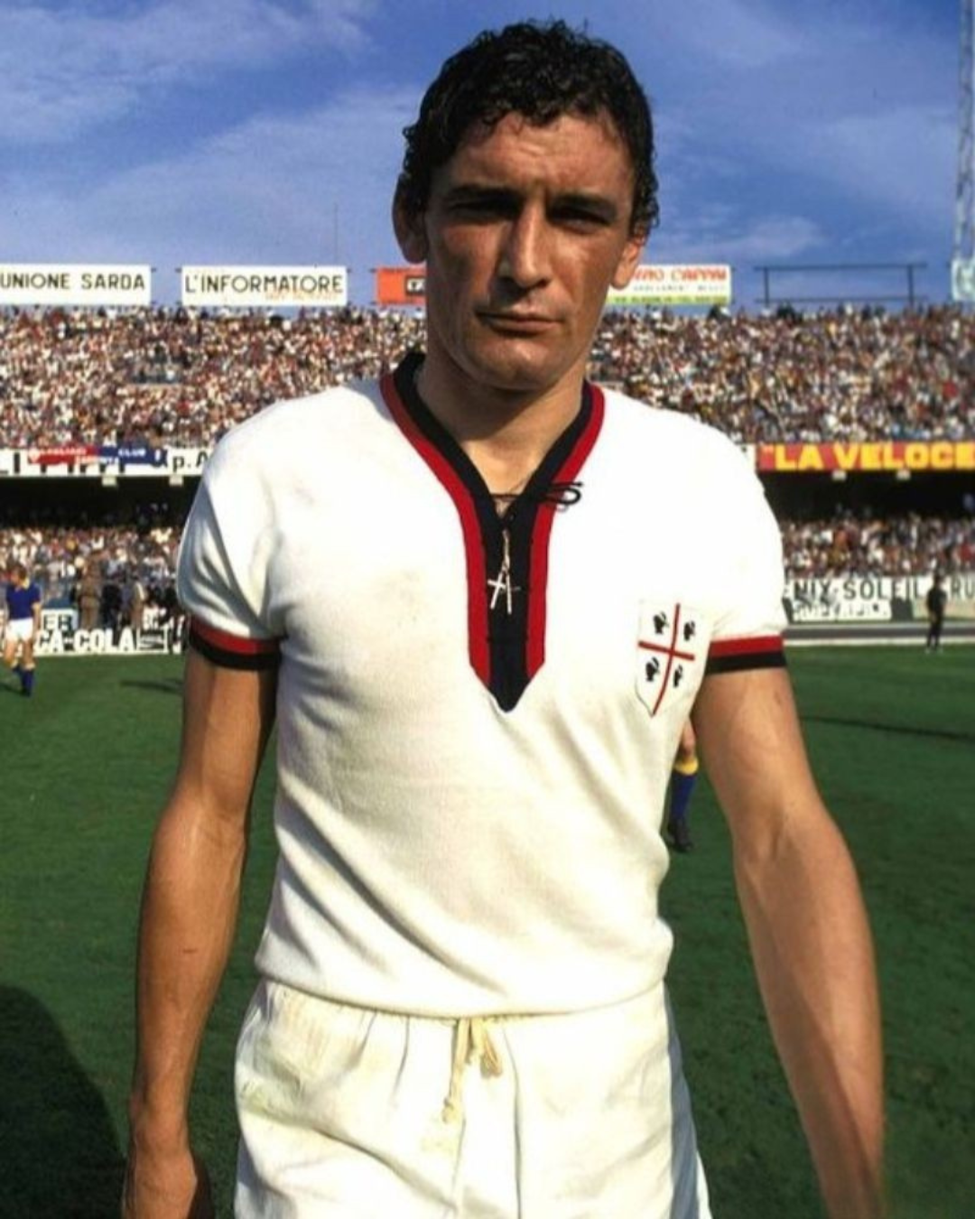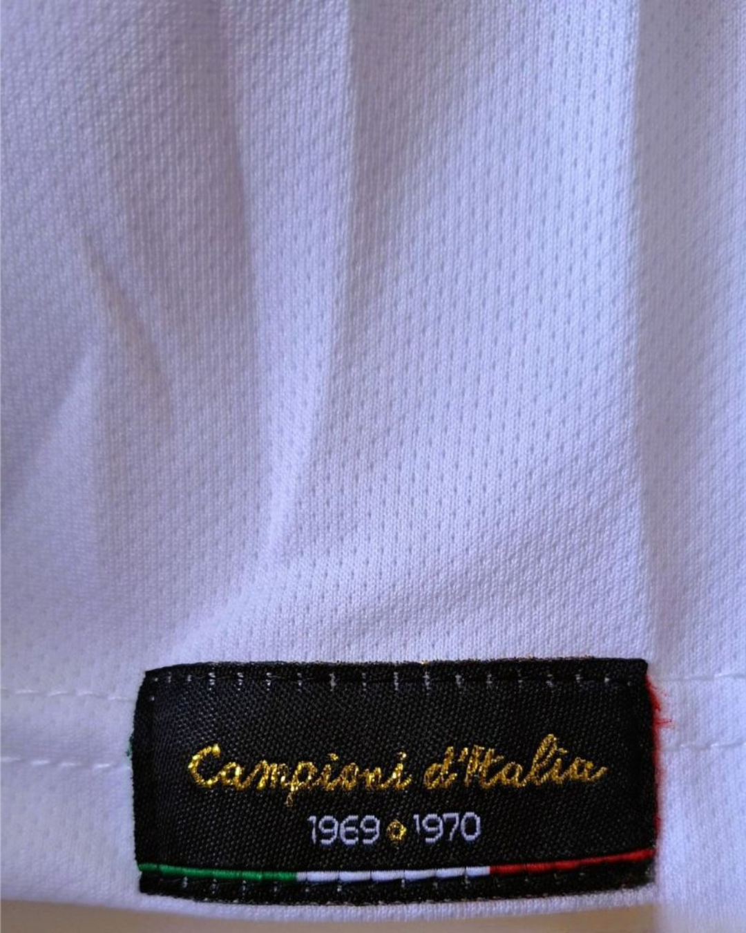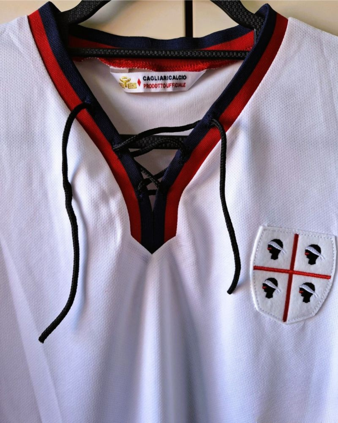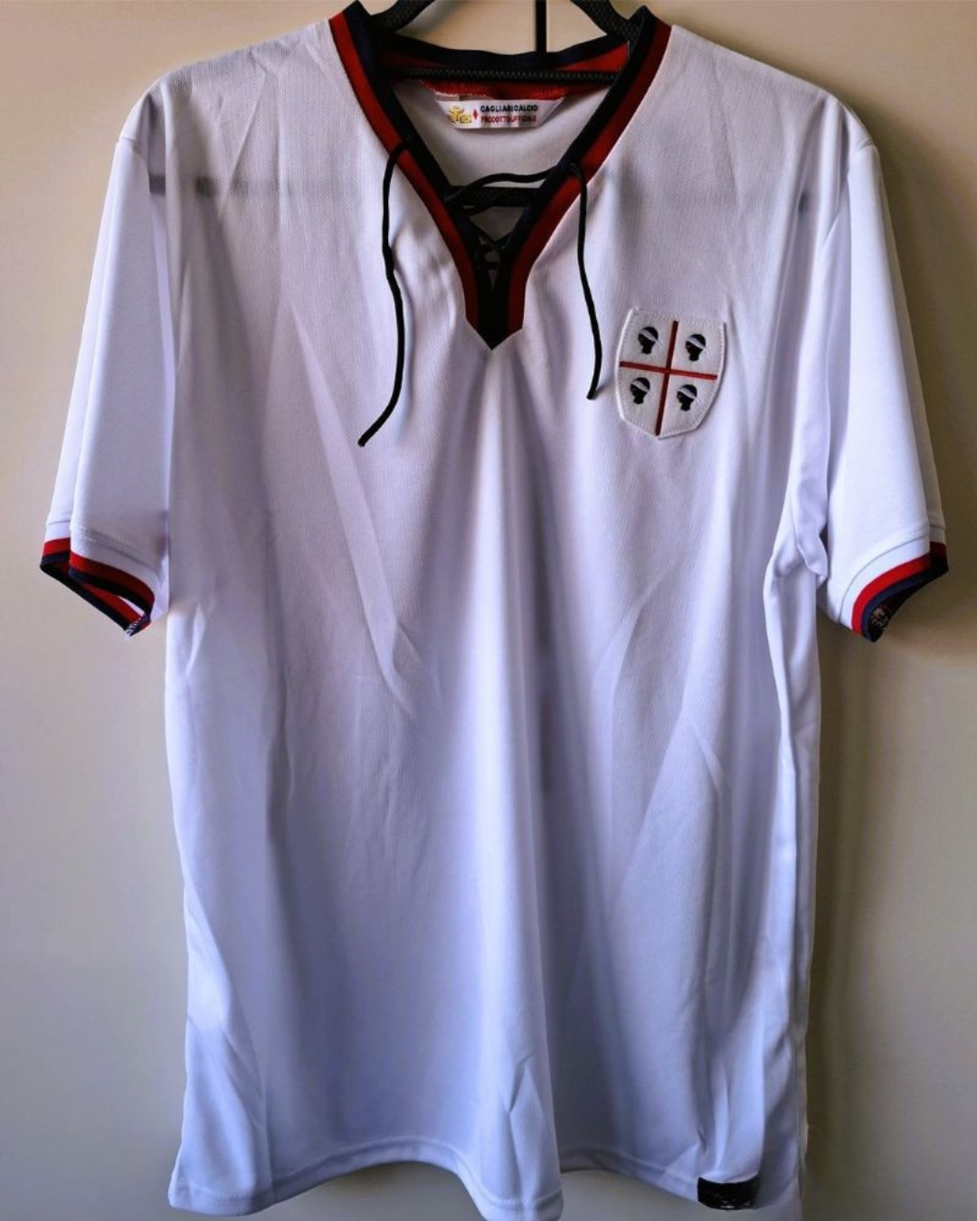 Una maglia storica, questa del Cagliari della stagione 1969-70 con il numero 11 di GIGI RIVA. Arricchita dalla patch che testimonia lo storico scudetto dei cagliaritani, ne omaggia l'evento evidenziando la personalizzazione di "Rombo di Tuono" ad innalzarne ulteriormente il prestigio