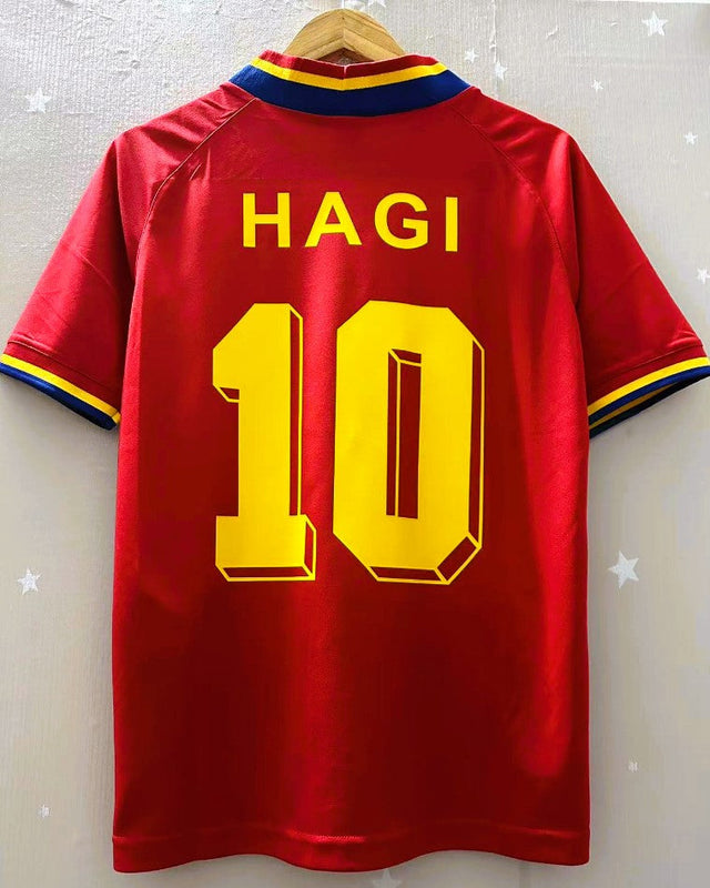 Un grande campione per una maglia leggendaria, questa della Romania nella stagione 1994-95 con il numero 10 di GHEORGHE HAGI. Realizzata da Adidas con un design più che mai attuale, celebra l'orgoglio di un popolo magnificamente rappresentato ai mondiali di USA 94 dal suo fenomenale e talentuosissimo giocatore