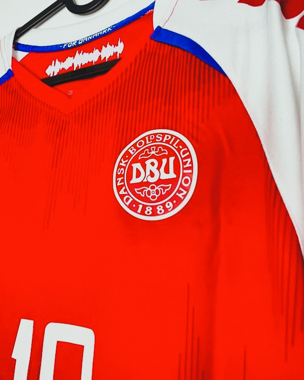 Rivivi il grande calcio con la maglia della Danimarca numero 10 di CHRISTIAN ERIKSEN della stagione 2020-21. Realizzata rispettando la tradizione danese, evidenzia la personalizzazione del talentuoso fantasista ad elevarne ulteriormente il prestigio