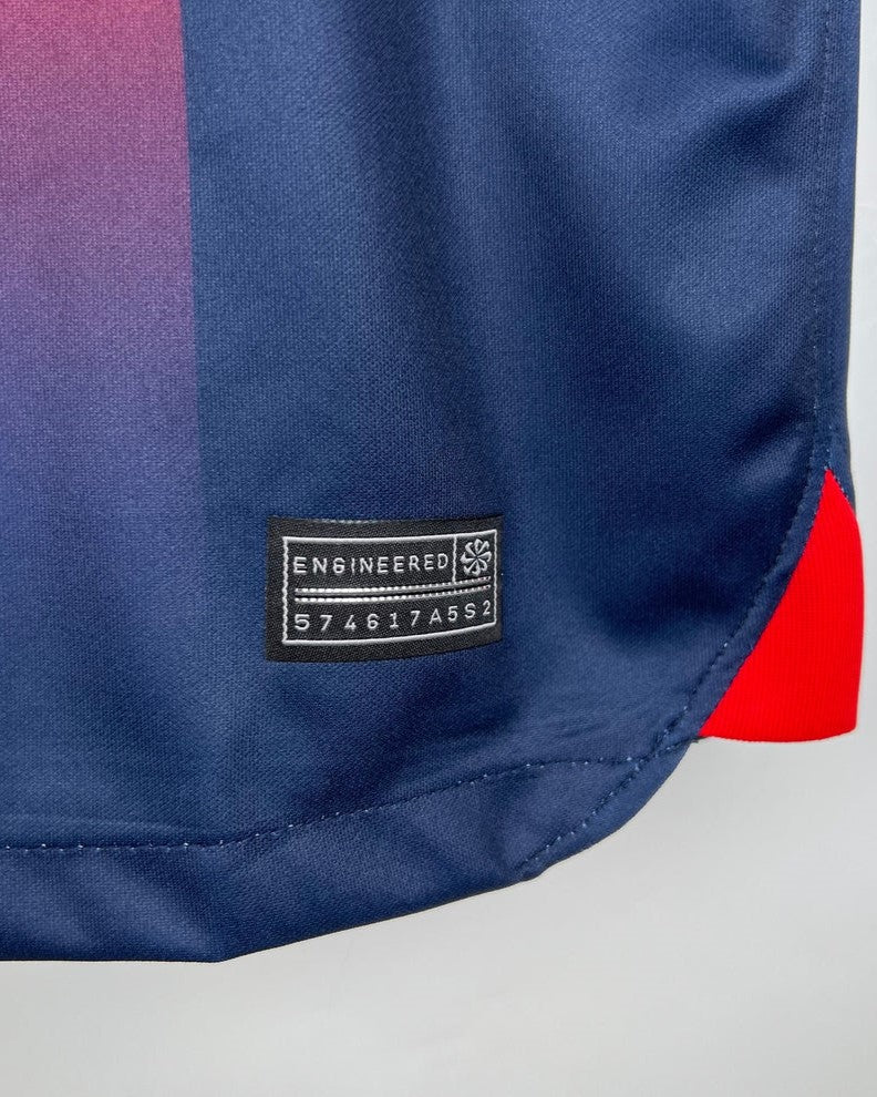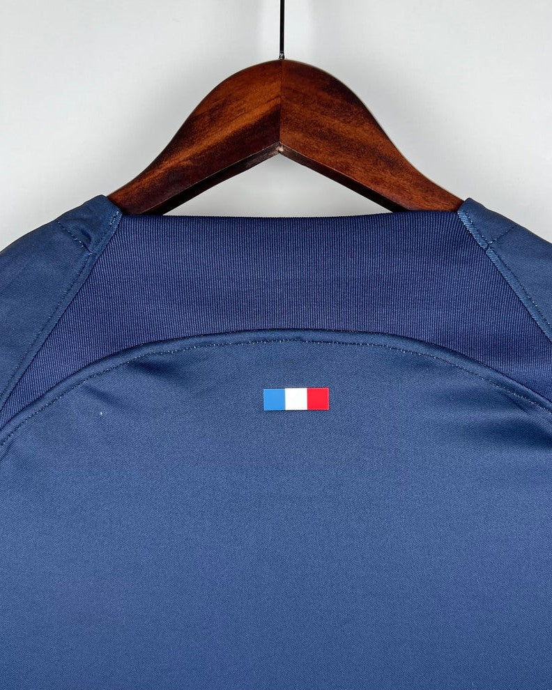 The Paris Saint Germain jersey for the 2023-24 season, worn with the number 7 by KYLIAN MBAPPE', is a celebration of PSG's greatness and history. Masterfully crafted by Nike, it recalls the club's glorious past while celebrating tradition and paying homage to the present with the French star