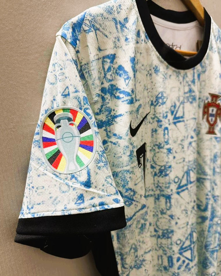 La maglia del Portogallo con il numero 7 di CRISTIANO RONALDO rappresenta al meglio la storia e la forza della nazionale portoghese. Arricchita su entrambe le maniche dalle patch di Euro '24, ha la personalizzazione del fuoriclasse lusitano ad aggiungere ulteriore prestigio ad una divisa straordinaria