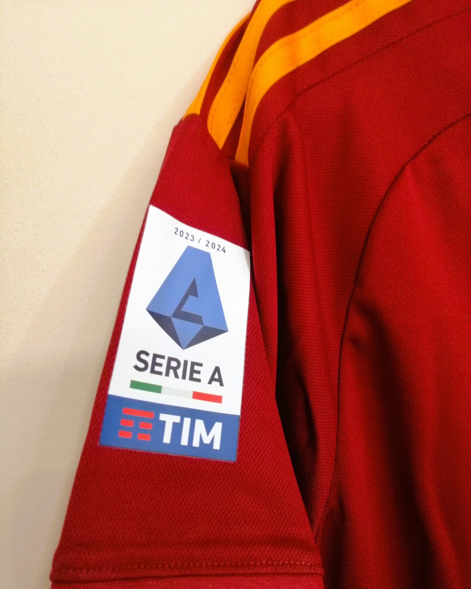 In the heart of the eternal city, amidst the lure of historic monuments and the overwhelming energy of the Roma fans, the Roma shirt for the 2023-24 season emerges with ROMELU LUKAKU's 90. This authentic masterpiece created by Adidas and enriched by the Serie A patch, is a hymn to the elegance and power that characterise the Belgian striker, absolute dominator of the opponent's penalty area.