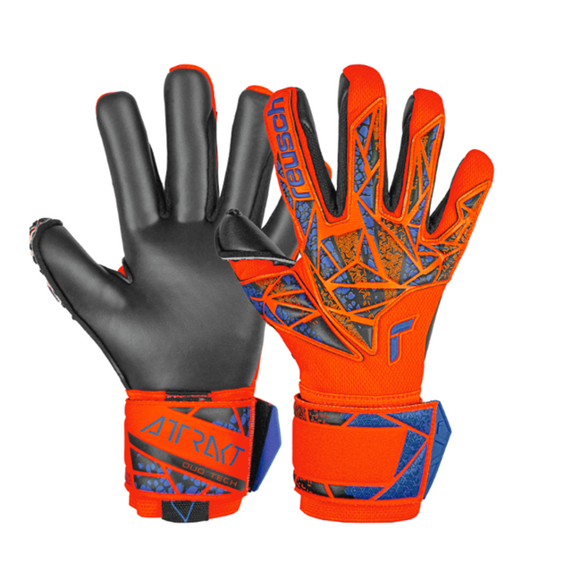 Il guanto Attrakt Duo è disponibile nel suo accattivante design Hyper Orange. Il suo taglio negativo Evolution offre una vestibilità aderente e precisa. L'esclusiva tecnologia Duo™ basata su puntini in lattice 3D sul lato interno della schiuma del palmo offre il massimo controllo della palla, tattilità e assorbimento degli impatti. Con il lattice Duo™ nero, questo look premium è completato e la zona di punzonatura in lattice e il cinturino completo in neoprene rendono il guanto un must-have.