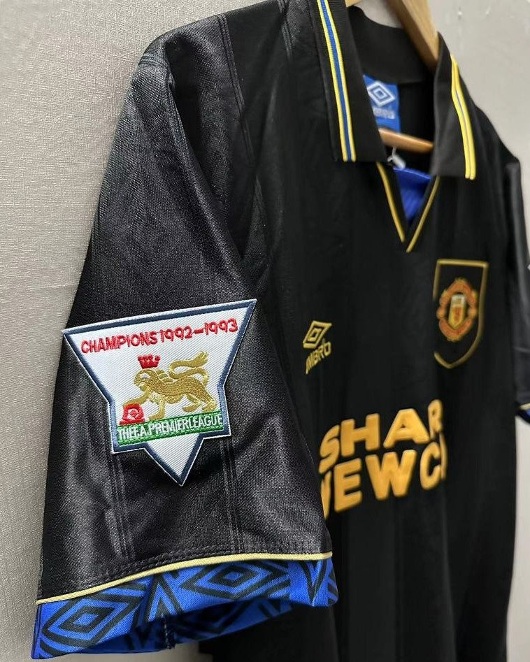 La maglia del Manchester United con il numero 7 di ERIC CANTONA, rappresenta al meglio la storia e la forza dei Red Devils nella stagione 1993-94. Arricchita dalle patch che testimoniano il trionfo in Premier League, ha la personalizzazione del talentuoso francese ad aggiungere ulteriore prestigio a questa divisa leggendaria