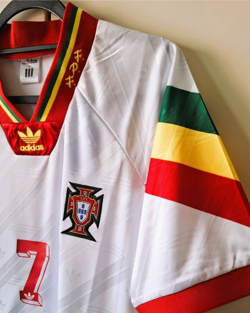 Rivivi la storia del calcio portoghese nella stagione 1992-93 grazie alla maglia con il numero 7 di LUIS FIGO. Realizzata nel rispetto della tradizione lusitana, evidenzia la personalizzazione di un giovane talento destinato a diventare leggenda del calcio mondiale