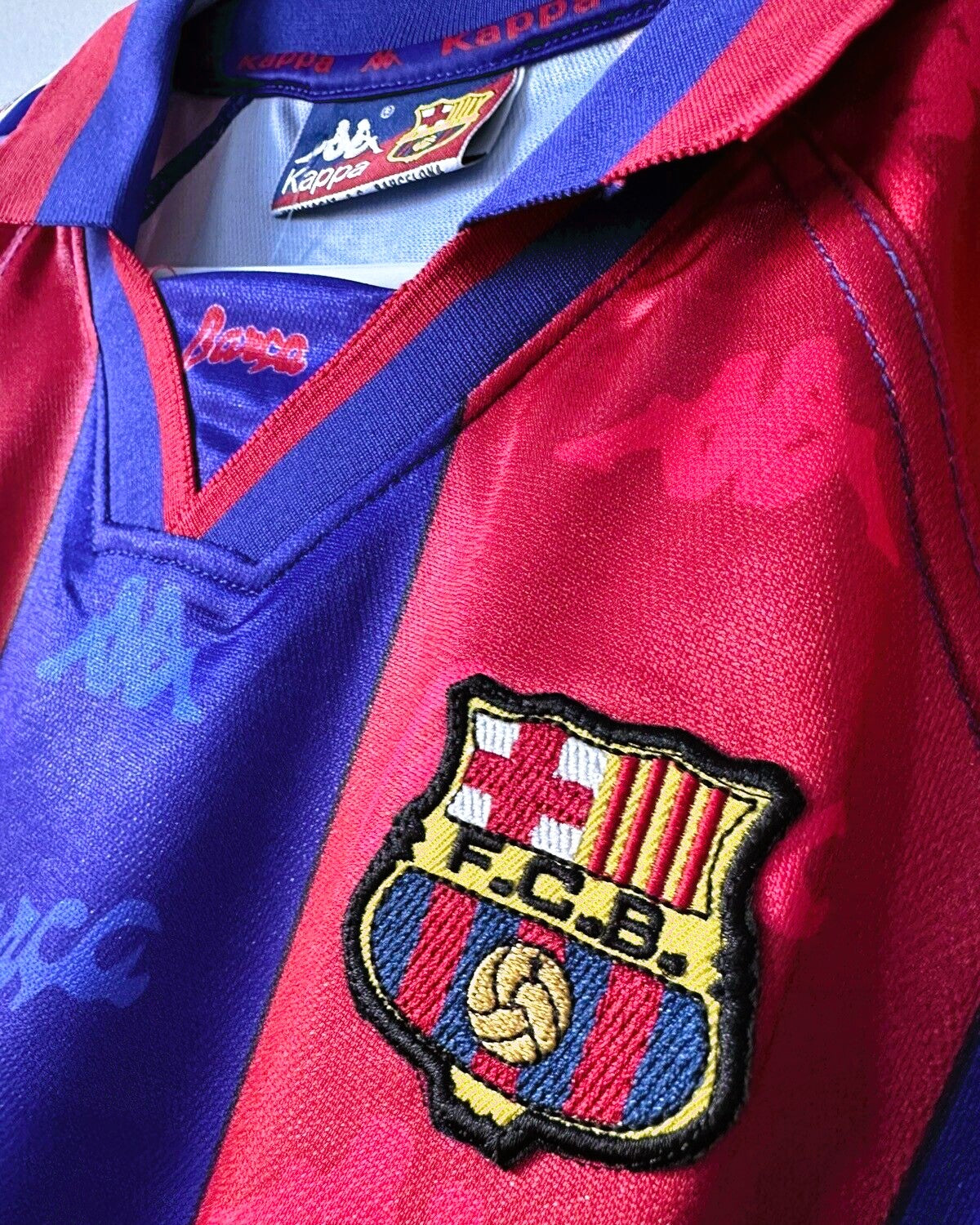 Benvenuti nella storia del calcio grazie alla maglia del Barcellona della stagiione 1996-97 e il numero 7 di LUIS FIGO, Questo gioiello blaugrana realizzato da Kappa rappresenta un vero capolavoro, reso ulteriormente prestigioso dalla personalizzazione del fenomenale giocatore portoghese