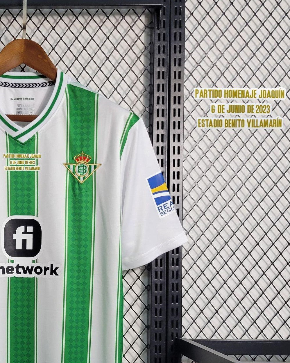 A historic shirt, this one from Betis Sevilla 2023-24, iconic and celebratory of JOAQUIN's career. A jewel created by Hummel that pays homage to the Spanish champion, a career spent in the green-and-white team with his inseparable number 17 and multiple references (such as the patch and the commemorative inscription) that make this an unmissable masterpiece