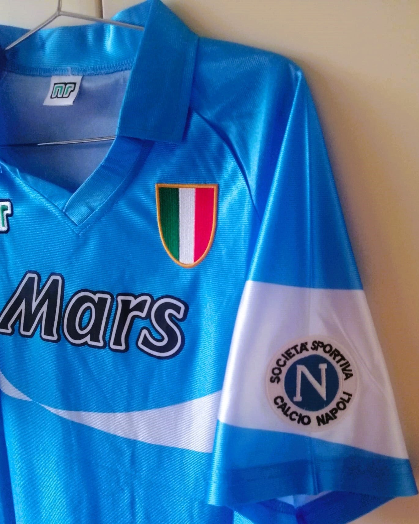 Benvenuti nella storia del calcio mondiale e da una maglia leggendaria, la numero 10 di DIEGO ARMANDO MARADONA del Napoli della stagione 1990-91. Un pezzo di storia con lo scudetto sul petto che testimonia la supremazia dei partenopei, guidati dal fenomenale e amatissimo "Pibe de oro" leggenda assoluta del calcio mondiale