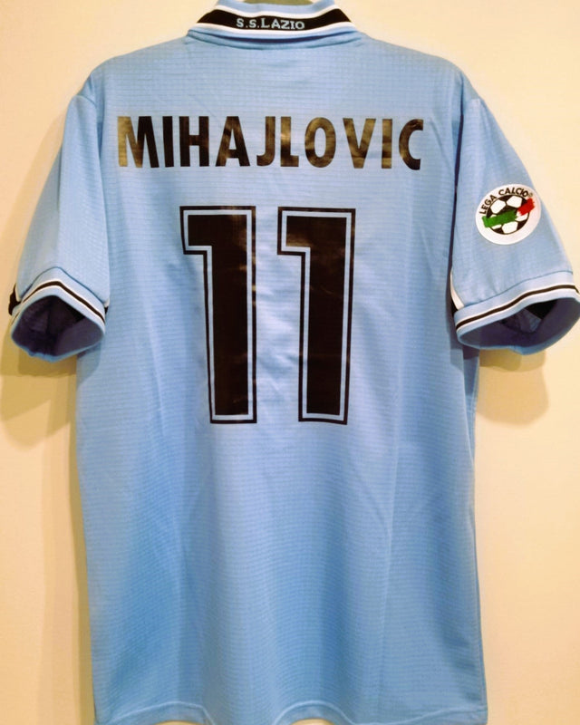 A leap into football history thanks to the Lazio shirt from the 1998-99 season worn with number 11 by NoISA MIHAJLOVIC. Enriched with the Serie A patch and the Italian Cup rosette, it testifies to the strength of the Lazio team led by the charismatic Serbian player