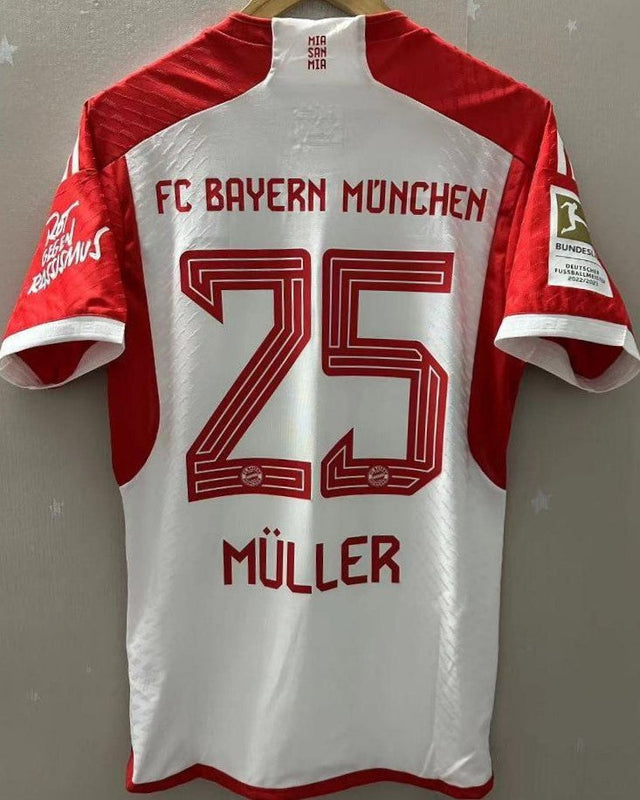 Benvenuti nella storia del calcio con la maglia del Bayern Monaco 2023-24, un'icona padrona del tempo che celebra con il numero 25 di THOMAS MULLER. Realizzata magnificamente con la patch che testimonia il titolo in BundesLa Liga, evidenzia la personalizzazione del fenomenale giocatore tedesco ad elevarne ulteriormente il prestigio