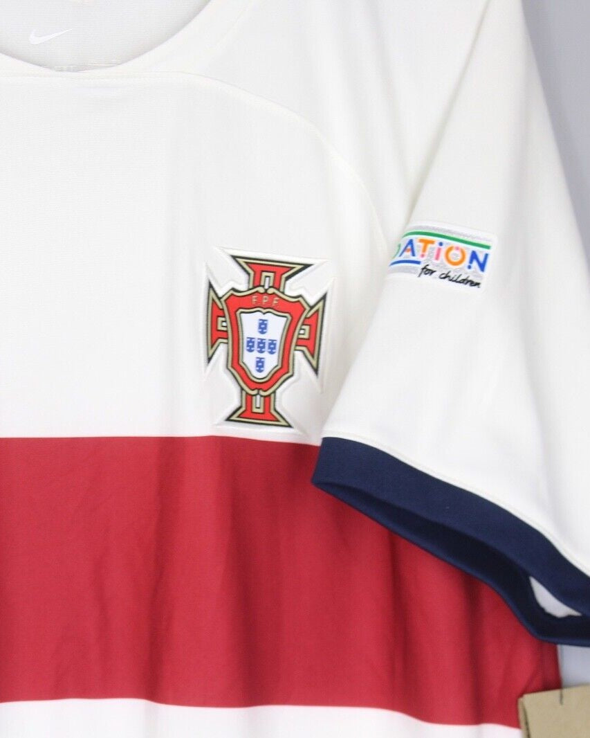 Celebrate football and the legend of CRISTIANO RONALDO's number 7 with the Portugal 2022-23 season jersey, a design masterpiece created by Nike with a bold white design interrupted by a red-green horizontal band. Enriched by the Nations League patches, it best represents the legend and talent of the phenomenal CR7 once again starring with the national team Portugal