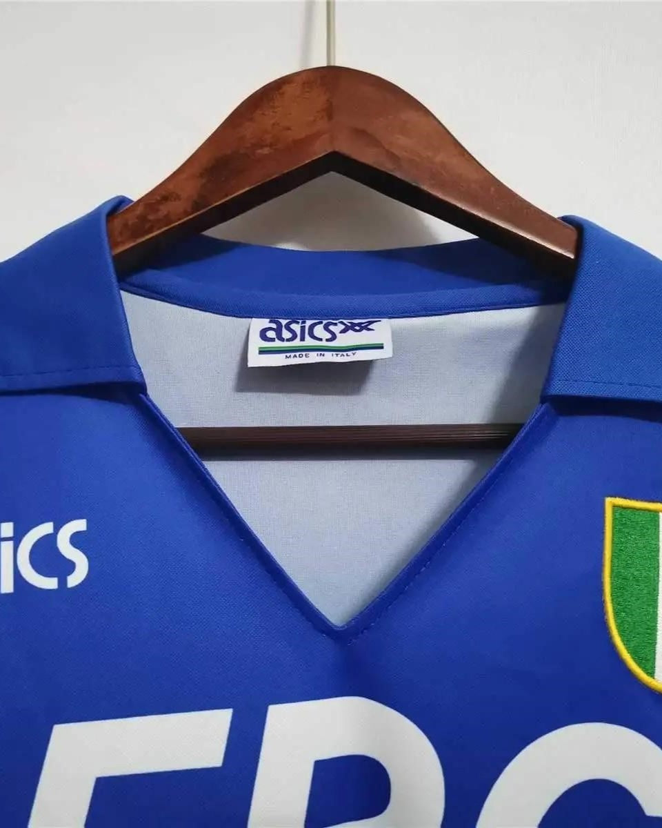 The history of football for one of the most beautiful jerseys ever, a jump to the 1991-92 season with GIANLUCA VIALLI's number 9. Masterfully made by Asics, it bears the Scudetto (symbol of the first and only one won by the Blucerchiato club) on its chest, carried by the absolute leader and captain of world football